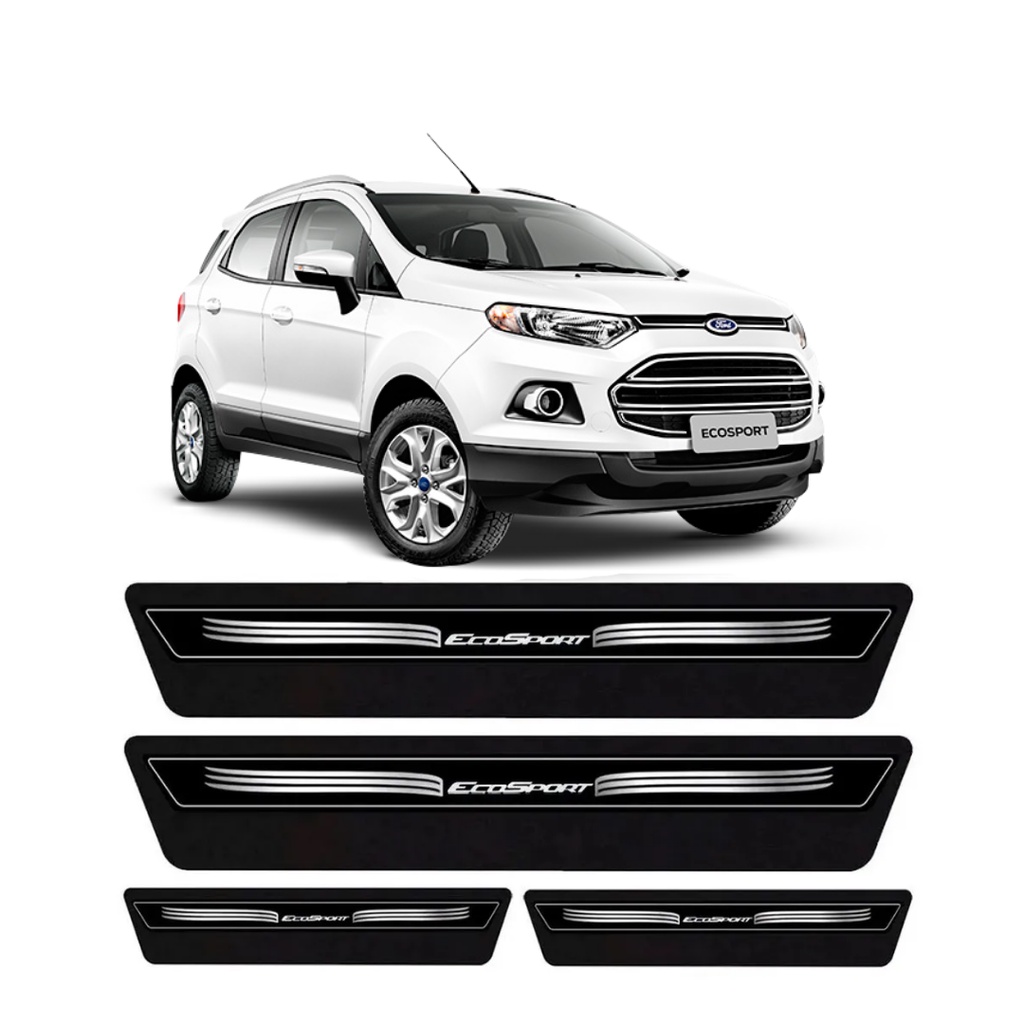 Kit 8 Peças Soleira Adesivo Porta Ecosport 2004 Á 08 2009 2010 2011 2012 2013 2014 2015 2016 2017 2018 2019 2020 - Preto