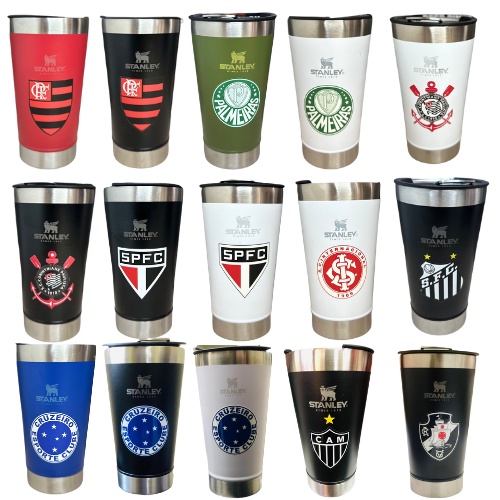 Copo Térmico Stanley (Personalizado time) 473ml com Tampa e abridor metal- Grêmio, Flamengo, São Paulo, Palmeiras, Corinthians, Fluminense, Botafogo, Cruzeiro, Bahia , vasco