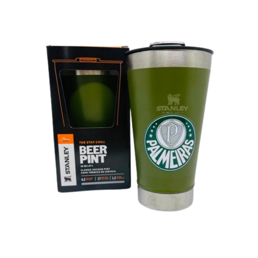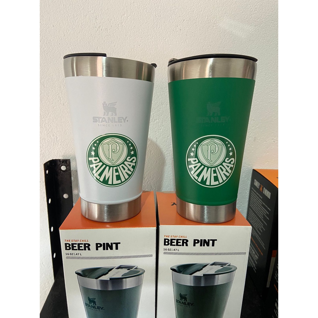 Copo Térmico Stanley do Palmeiras ,473ml com Tampa e abridor metal, Verde e Branco - bazar.completo