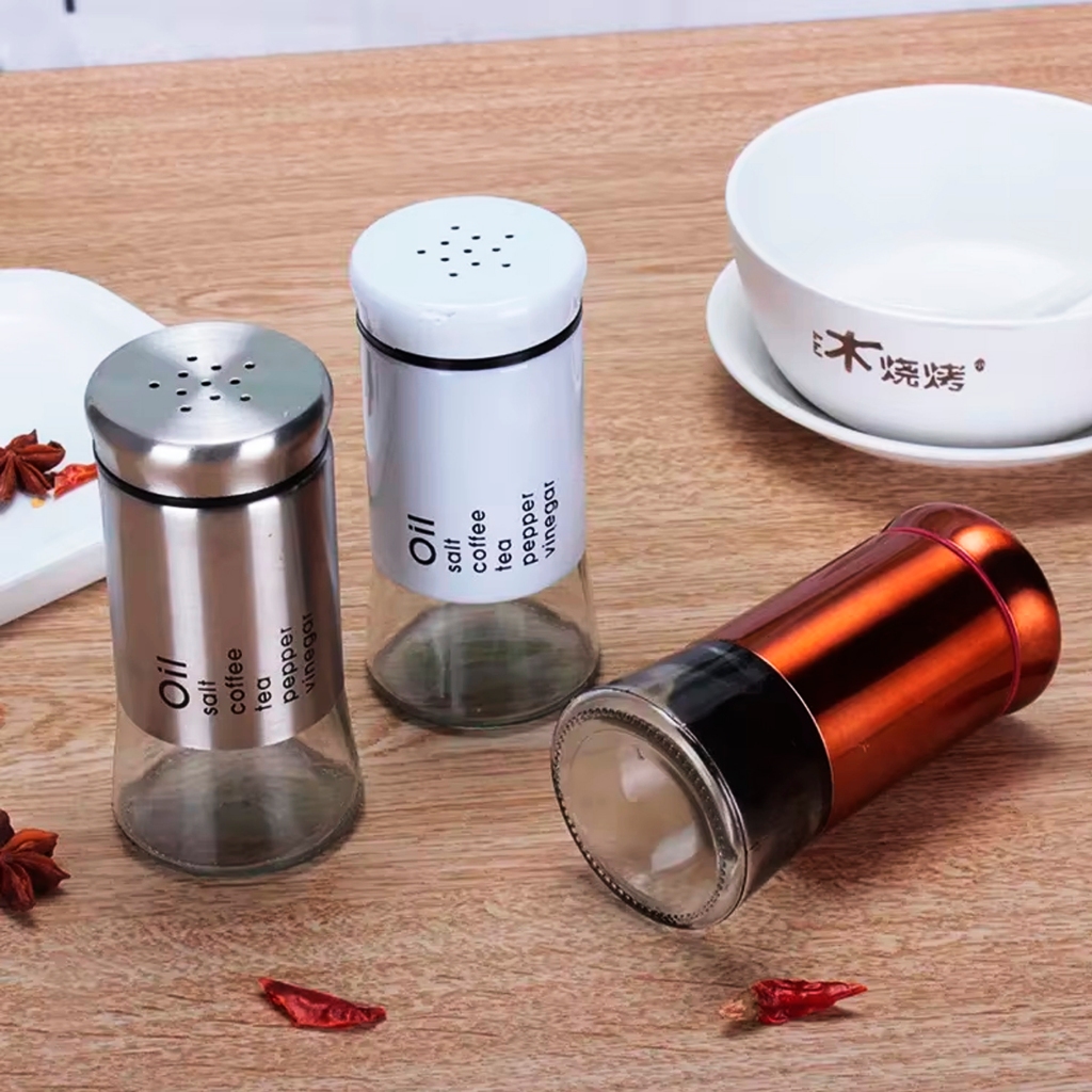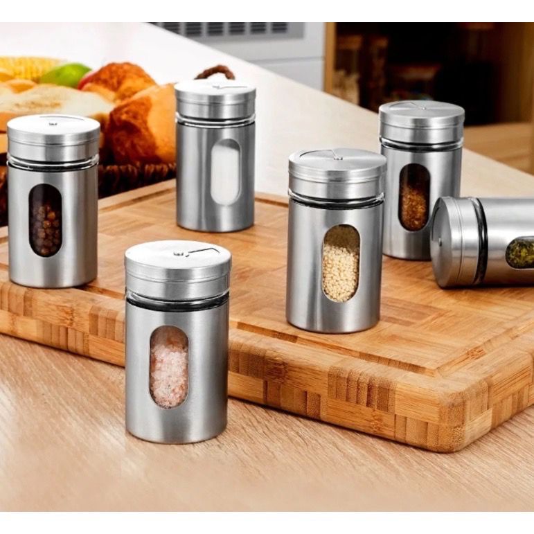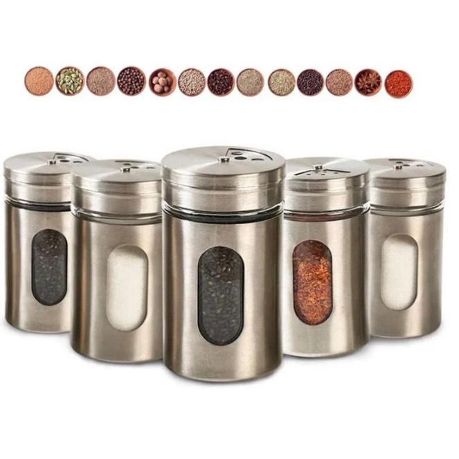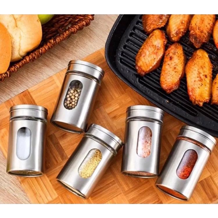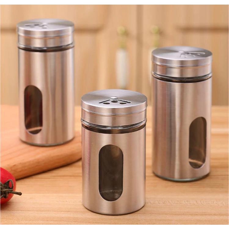 Porta Condimento Tempero Saleiro Pimenteiro Em Vidro Aço Inox Premium Com Viso- 1 Peças