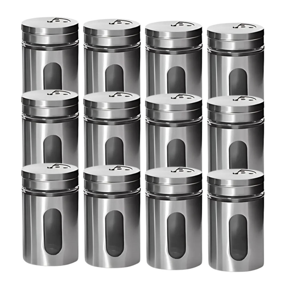 Kit Com 12 Porta Condimento Aço Inox Saleiro Pimenteiro Temperos Visor Vidro