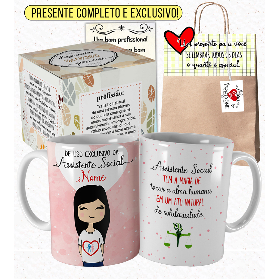 Caneca Assistente Social Profissão Personalizada com Nome e com Embalagem Presenteável
