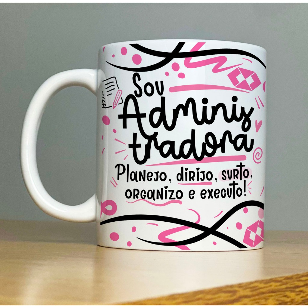 Caneca Personalizada de porcelana – Profissão: Sou Administrador - Sou Administradora - Com Flork - 325ML