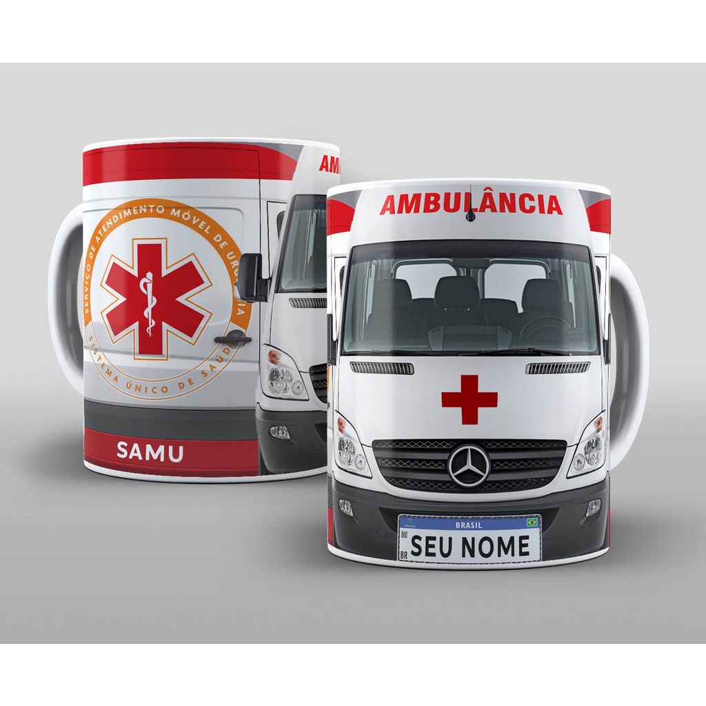 Caneca Profissão Bombeiro, Personalizada com nome na Placa, Porcelana 325ml