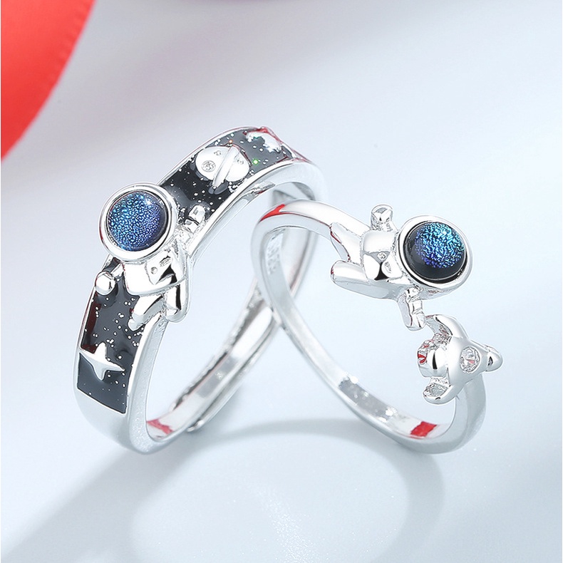 S925 Anel de Casal de Astronauta de Prata Anel de Casal de Vidro Único Abertura Ajustável Homens Mulheres Anel de Casal Presente do Dia dos Namorados