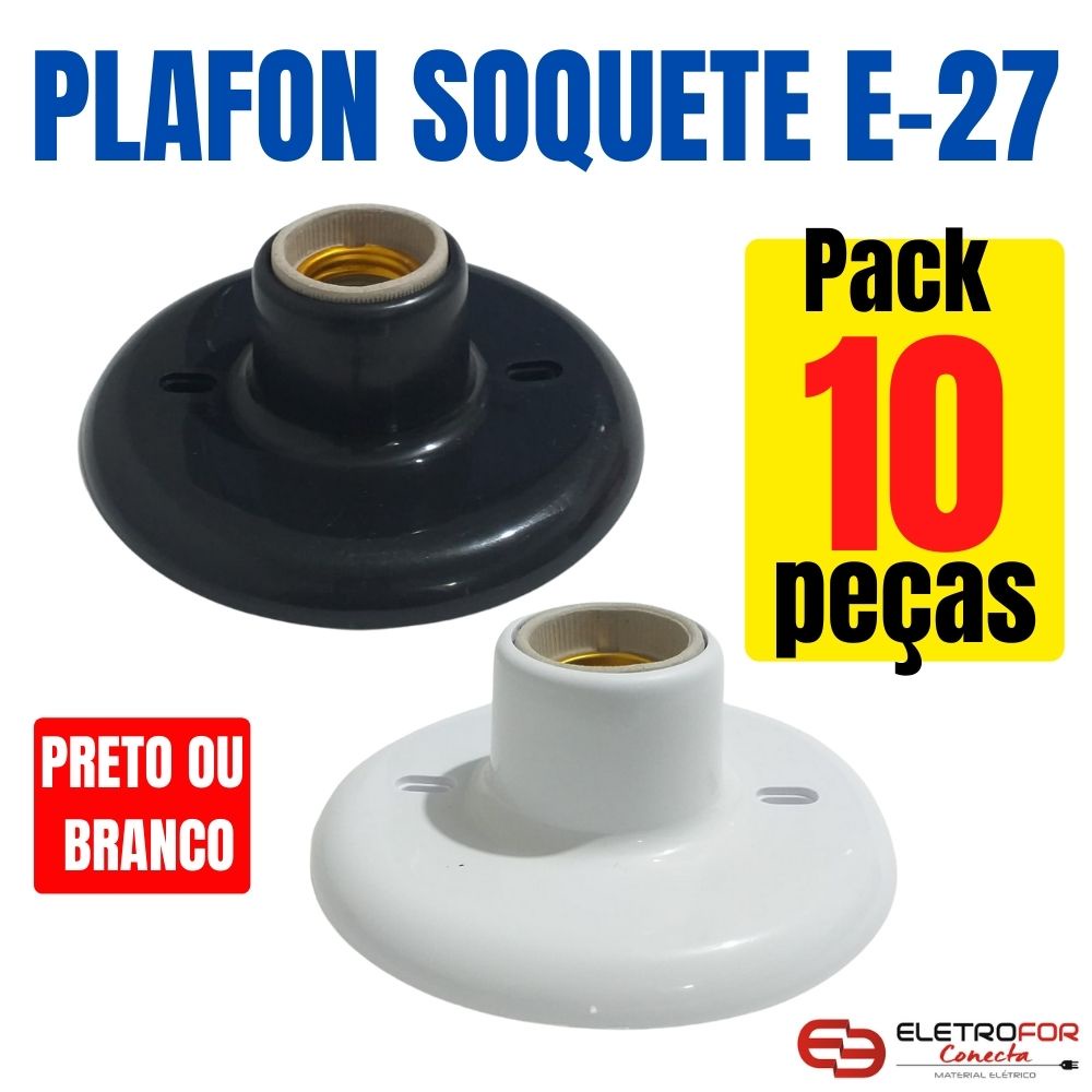 Kit 10 Plafonier Plafon sobrepor Luminaria Suporte de Lampada Soquete de Teto com Bocal em Porcelana - ROCHA