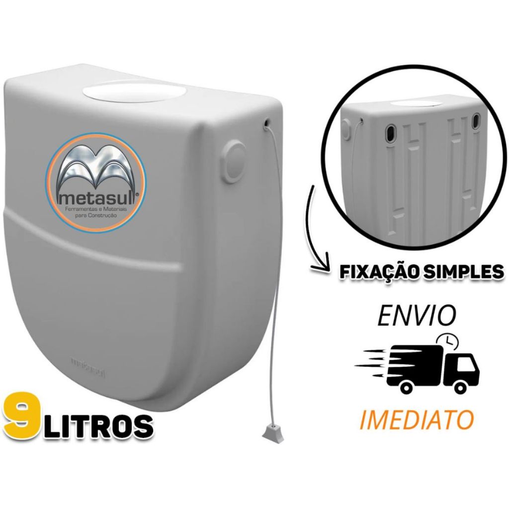 Caixa de Descarga P/ Vaso Sanitário Com Cordinha Suspensa Banheiro Plástica Metasul 9 Litros