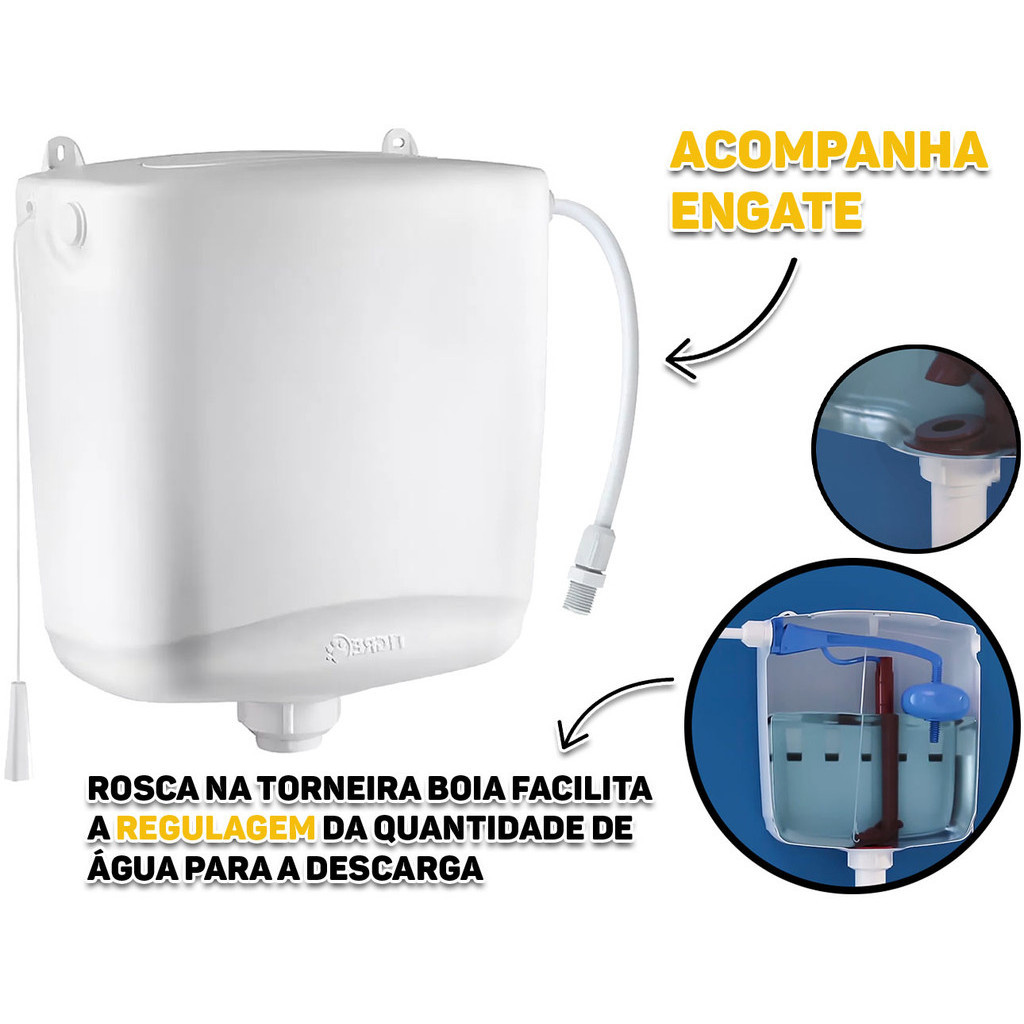Caixa De Descarga Plástica Suspensa Sem Engate 6 A 9 Litros Universal P/ Vaso Sanitário Banheiro