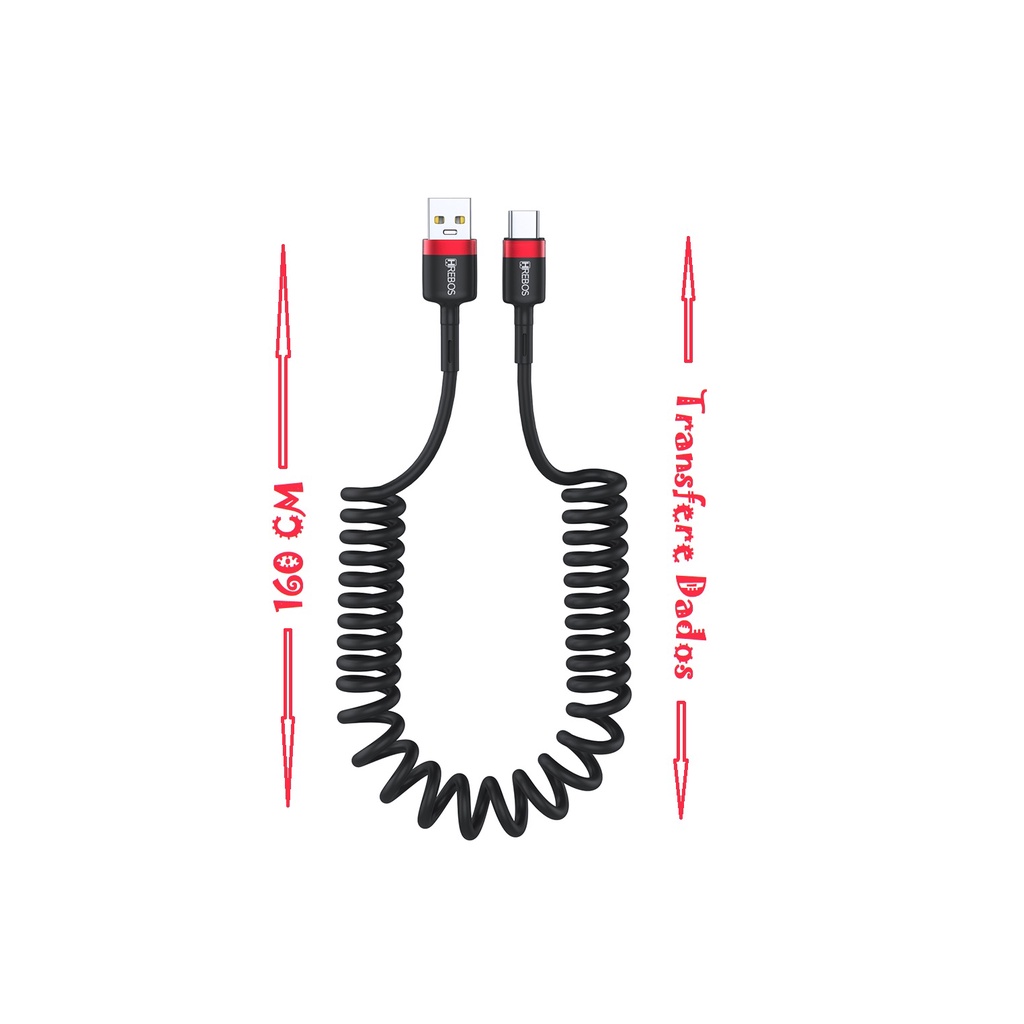 Cabo Espiral de Dados e Carregamento Turbo HRebos HS-138 Tipo-C 1,6 Metros