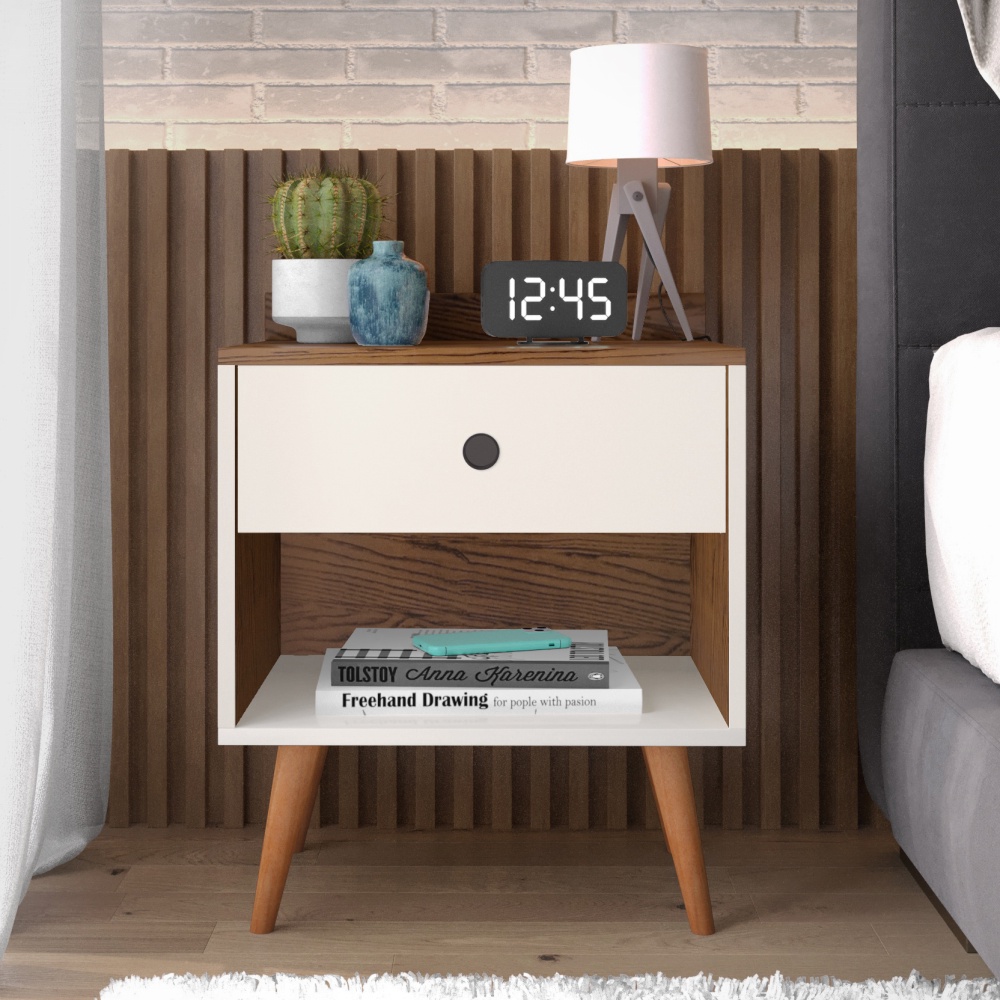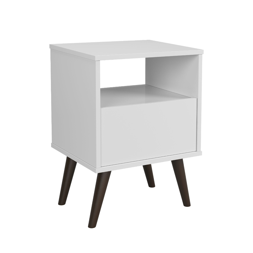Mesa de Cabeceira para Quarto com Pés Retrô e 1 Gaveta Pérola