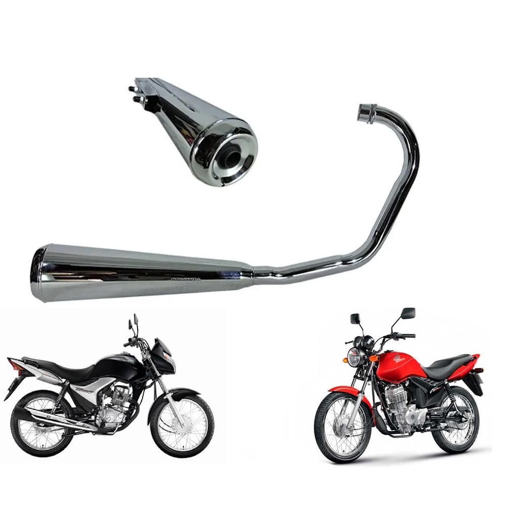 Escapamento Cg Titan Fan Cargo Start 125 150 KS ES Ano 2009 Até 2018 Fortuna Mini Estralador Sem Protetor Cromado