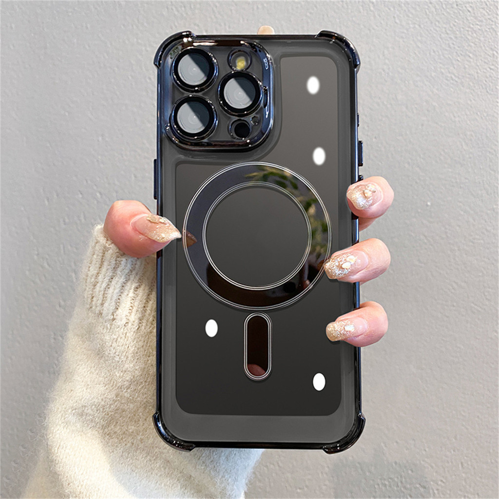 Câmera Metálica De Luxo Acrílica Transparente Magnética Para Magsafe Caixa De Carga Sem Fio iPhone 15 14 13 12 Pro Max Capa Dura À Prova De Choque