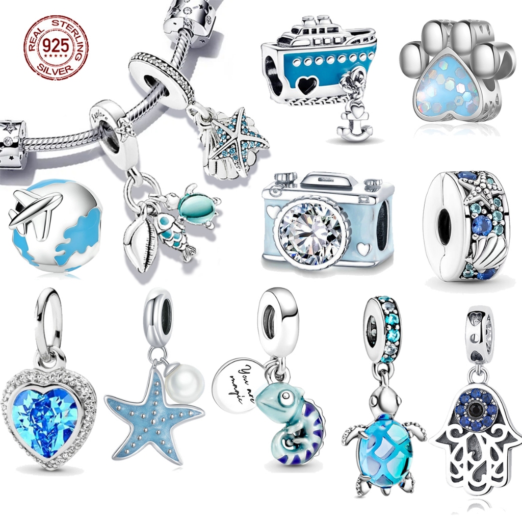 Berloque De Prata 925 Pingente Pulseira Clássicos De Encanto Série Ocean Azul Tartaruga Estrela Do Mar