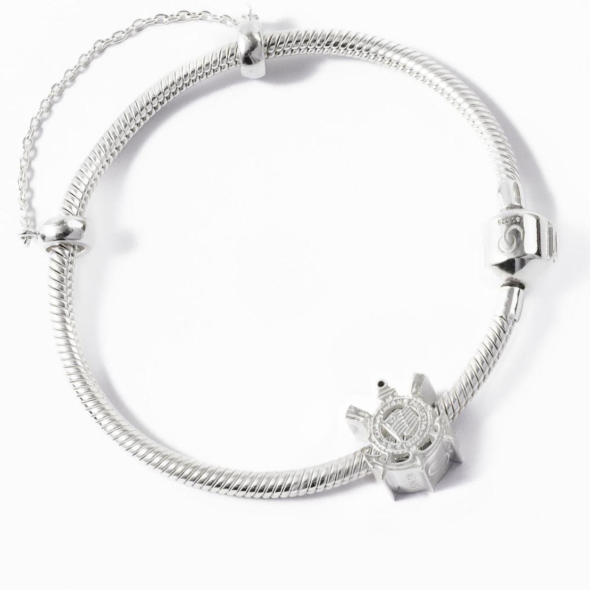 Berloque Corinthians Escudo em Prata 925 + Pulseira Tamanho:20 cm