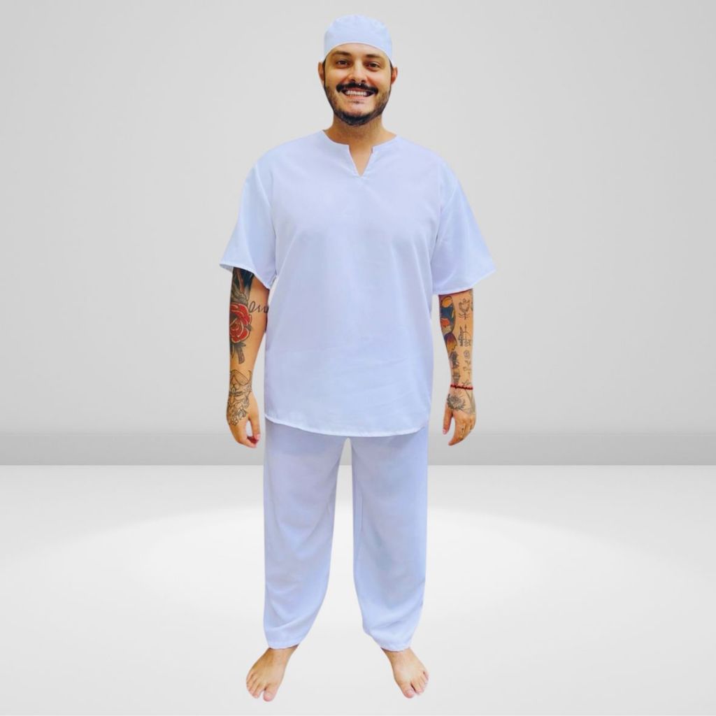 Roupa Branca Umbanda/Candomblé Masculino Conjunto 2 Peças Ração Bata + Calça