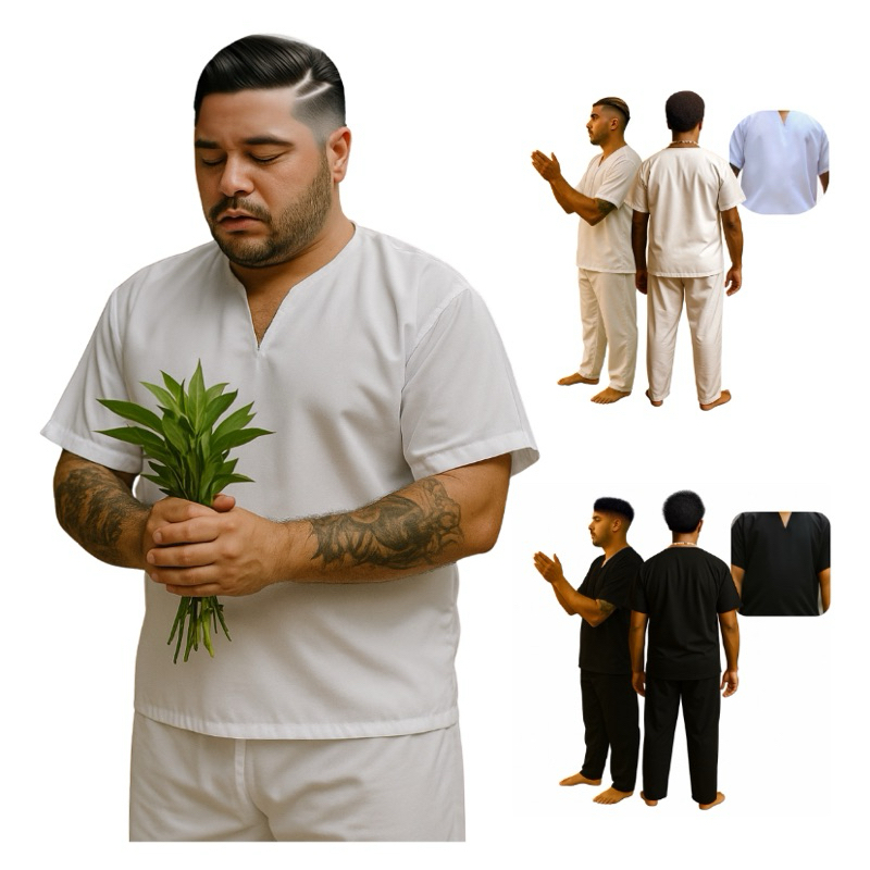 🕊️ Roupa de Ração Masculina Umbanda e Candomblé - Conjunto com Bata e Calça