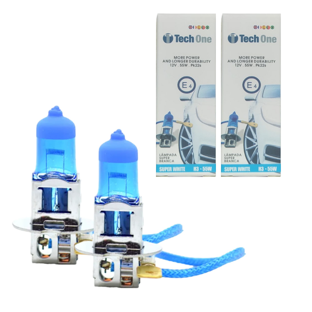 Par Lâmpada super branca H3 55W Efeito Xenon 8500K Tech One