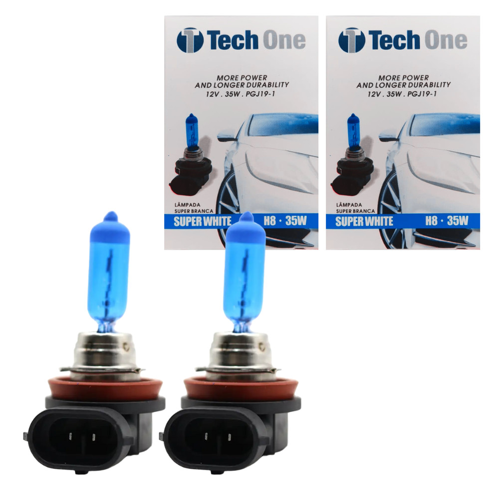 PAR LAMPADA SUPER BRANCA H8 35W 12V 8500K EFEITO XENON TECH ONE