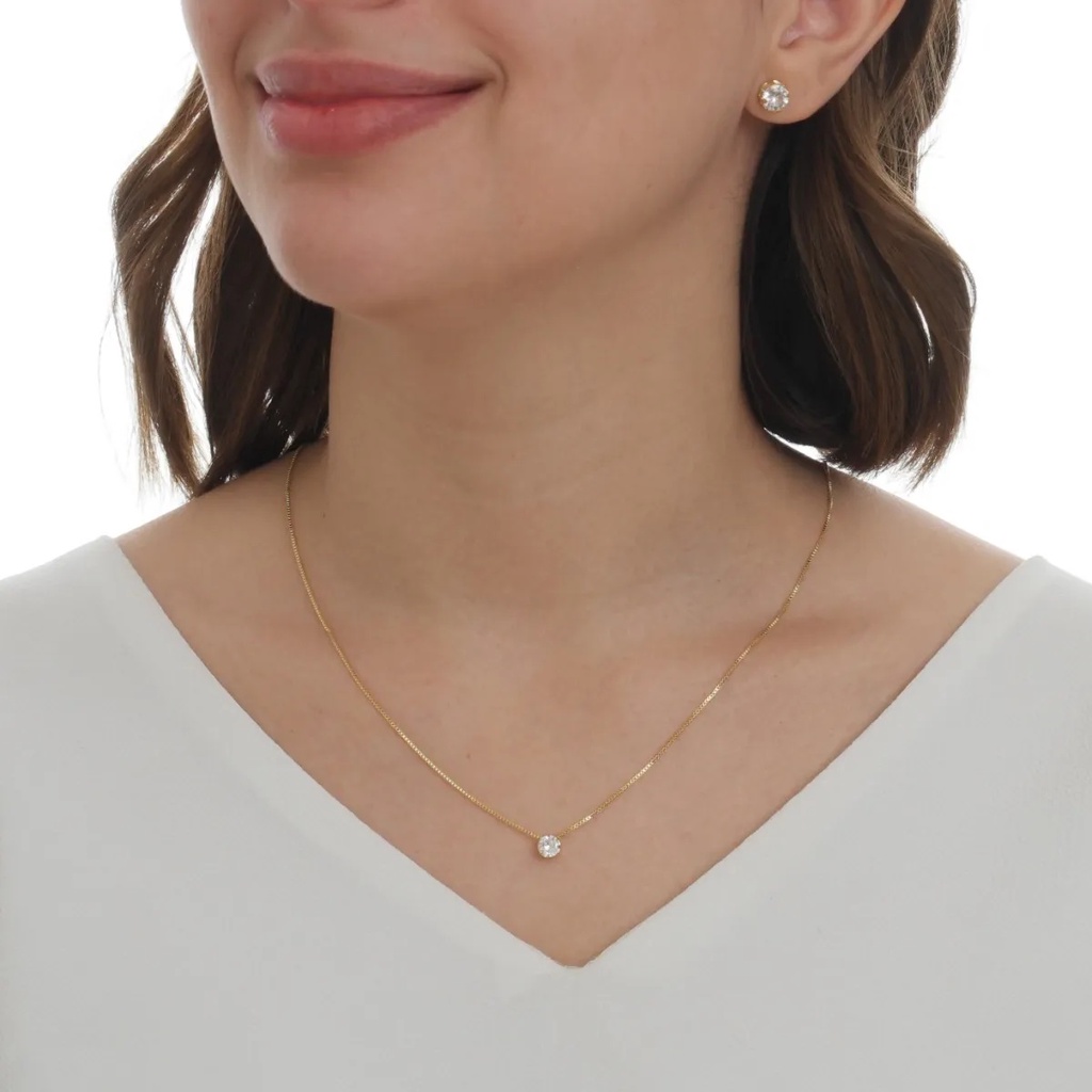 Conjunto Colar Com Pingente E Brinco Ponto De Luz Com Zirconia Banhado Em Ouro 18k Ótima Sugestão De Presente Fim De Ano E Amigo Oculto