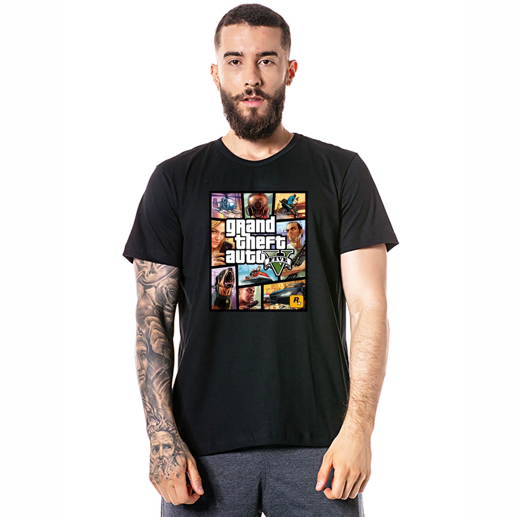 Camiseta Masculina de Algodão GTA V Capa Grand Theft Auto