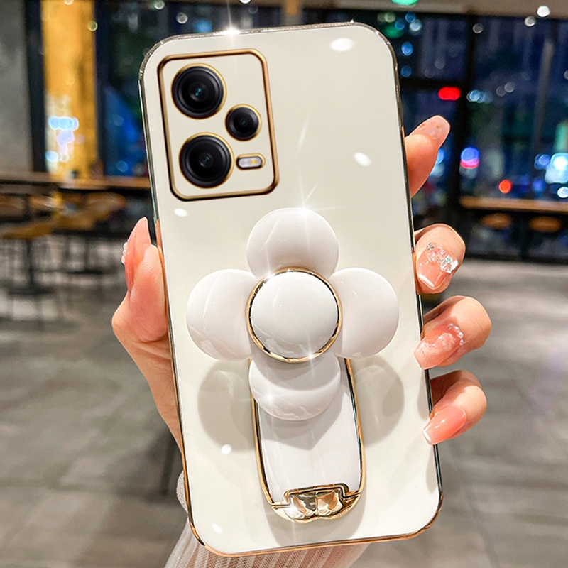 Capinha Xiaomi Redmi Note 12 4G 5G/12 pro/note 12S Flores Giratórias Com Suportes Telescópicos Proteção Fofa Da Câmera