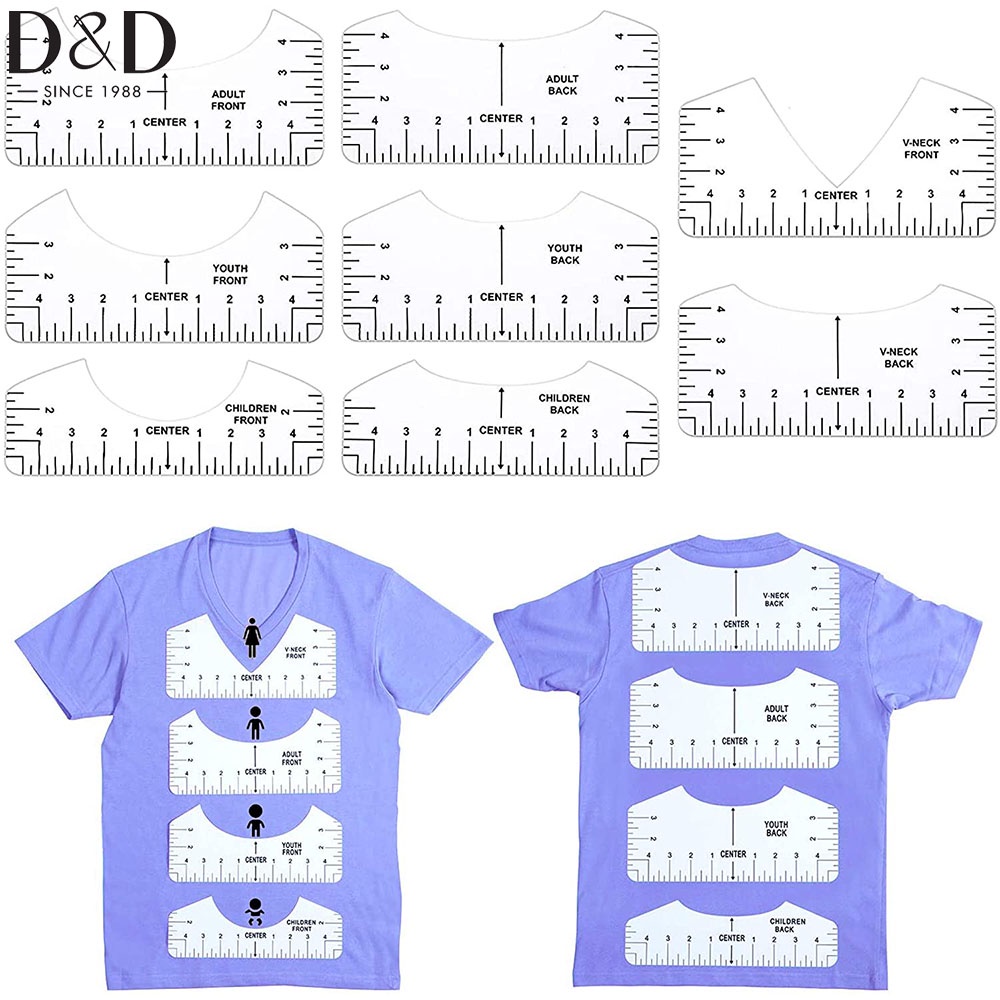 8pcs Régua De Alinhamento De Camiseta PVC Medição De Pescoço Redondo E Guia De Gola V Para Adultos Jovem Crianças