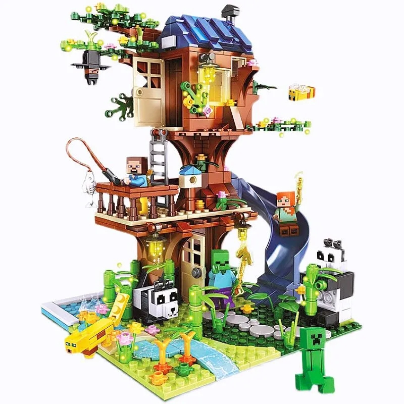 1.000 peças compatíveis com Lego Minecraft Series Panda Tree House Pig Pig House Jungle Cachoeira Steve Tree House Meninos Meninas Montagem educacional Bloco de construção Brinquedo presente