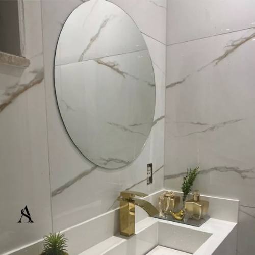 Espelho Redondo de Vidro Lapidado Para Banheiro Sala Quarto