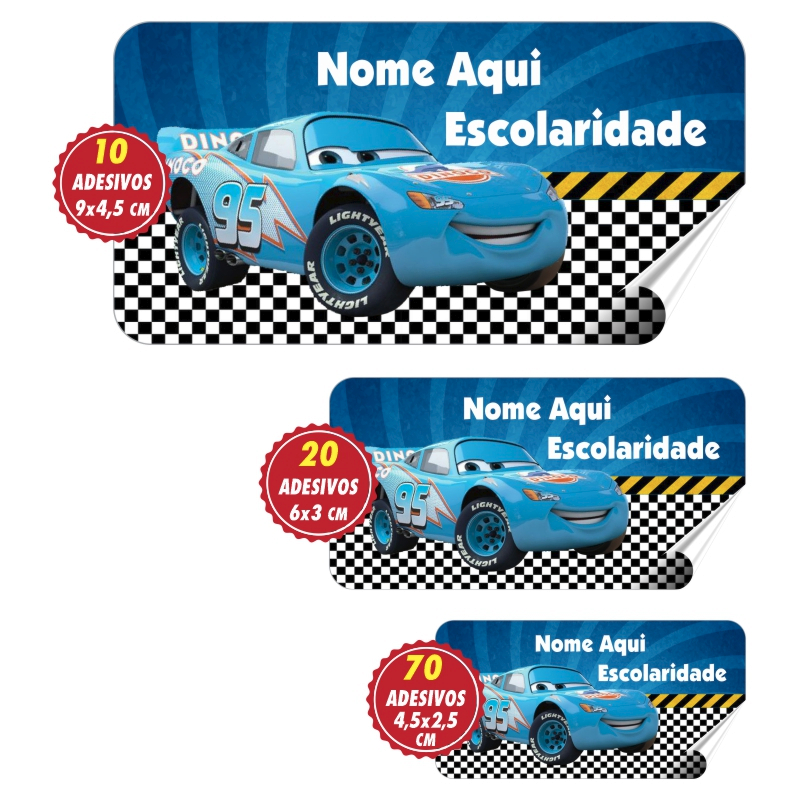 100 Adesivos Carros Disney Relâmpago Mcqueen Para Material Escolar Etiquetas Personalizadas