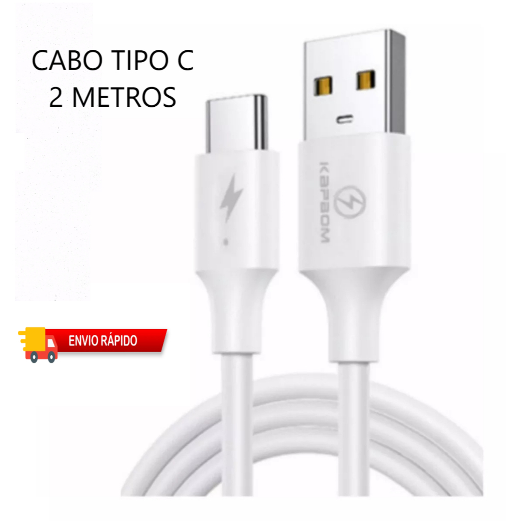 Cabo Carregador Tipo C USB 3A Turbo Celular 2 Metros Carga Rápida Kapbom Original Resistente Reforçado