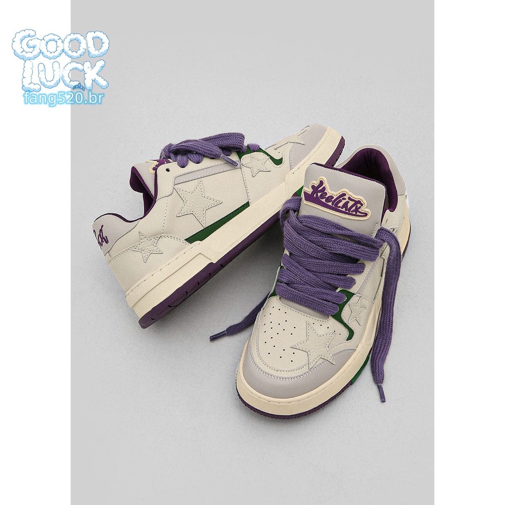 Bape Sta Five-Pointed Star Ape-Man Head Sapatos de Tênis Feminino de Ponta Baixa Tênis Casual Sapatilhas de Tênis Cinza Púrpura Ru