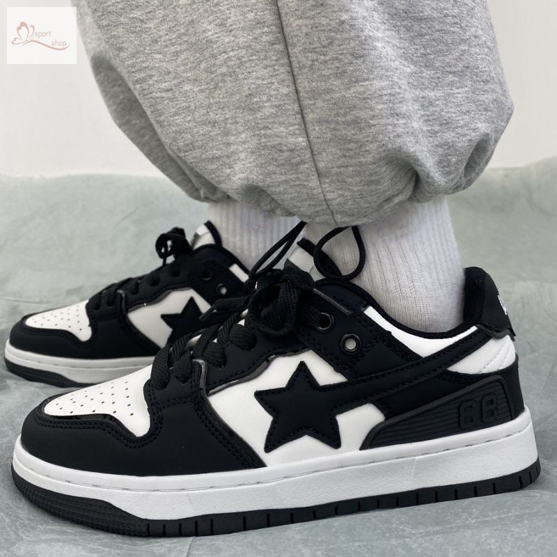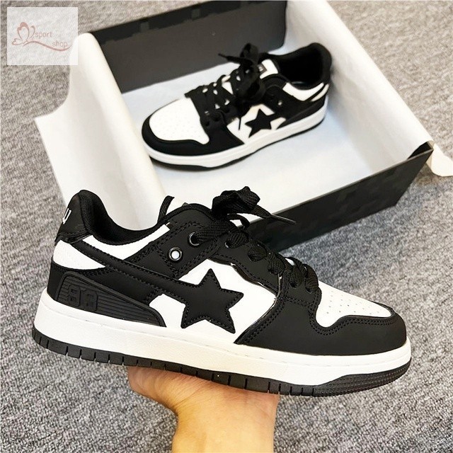 Bape Sta Cinco Pontas Star Ape Head Preto E Branco Tênis De Topo Baixo Casual Esportivo Corrida Homens Mulheres