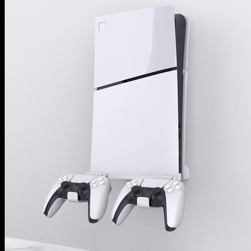 Jomaa Wall-Mounted Console Bracket, Adequado para PS5 Slim Series Bracket, com 2 Suportes Controladores, Kit de Suporte de Metal Sólido, Fácil Instalação