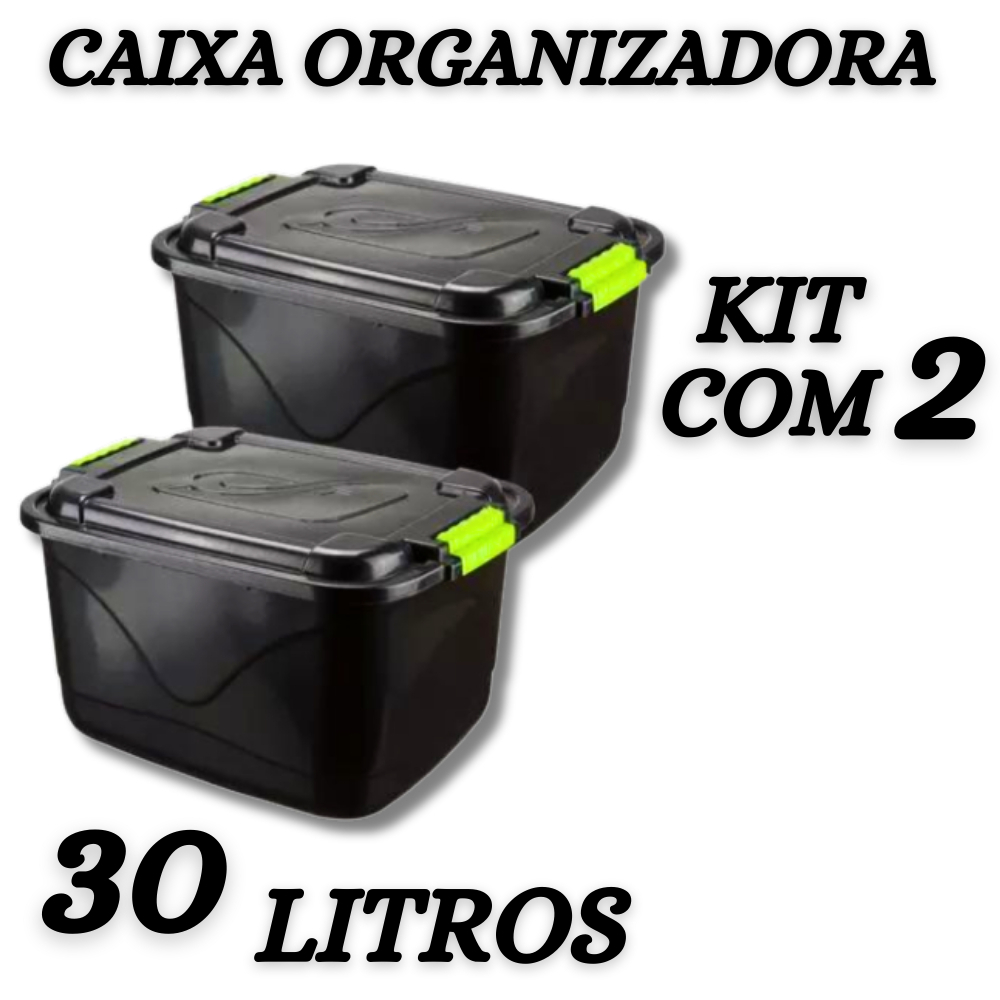 Kit 2 Caixas Organizadora 30l Grande C/Tampa e Trava Cesto para Brinquedos e Multiuso