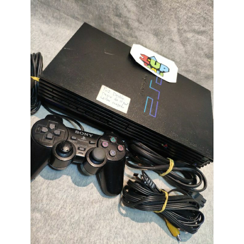 Playstation 2 fat. desblo.queado. controle original e cabos. leia