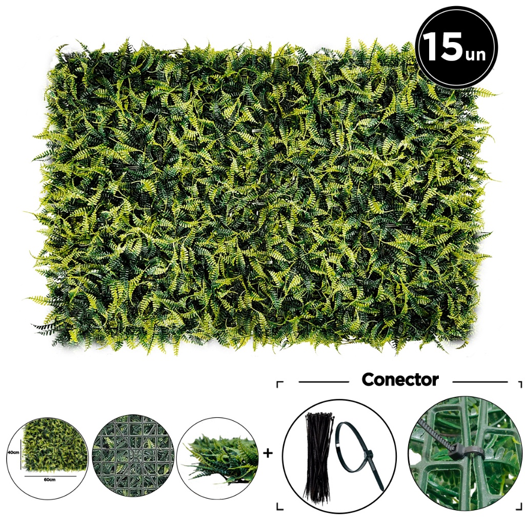 kit 15 unidades Placas Samambaia 40x60 Grama Artificial Jardim Vertical Parede de Plantas Verde decoração muro inglês