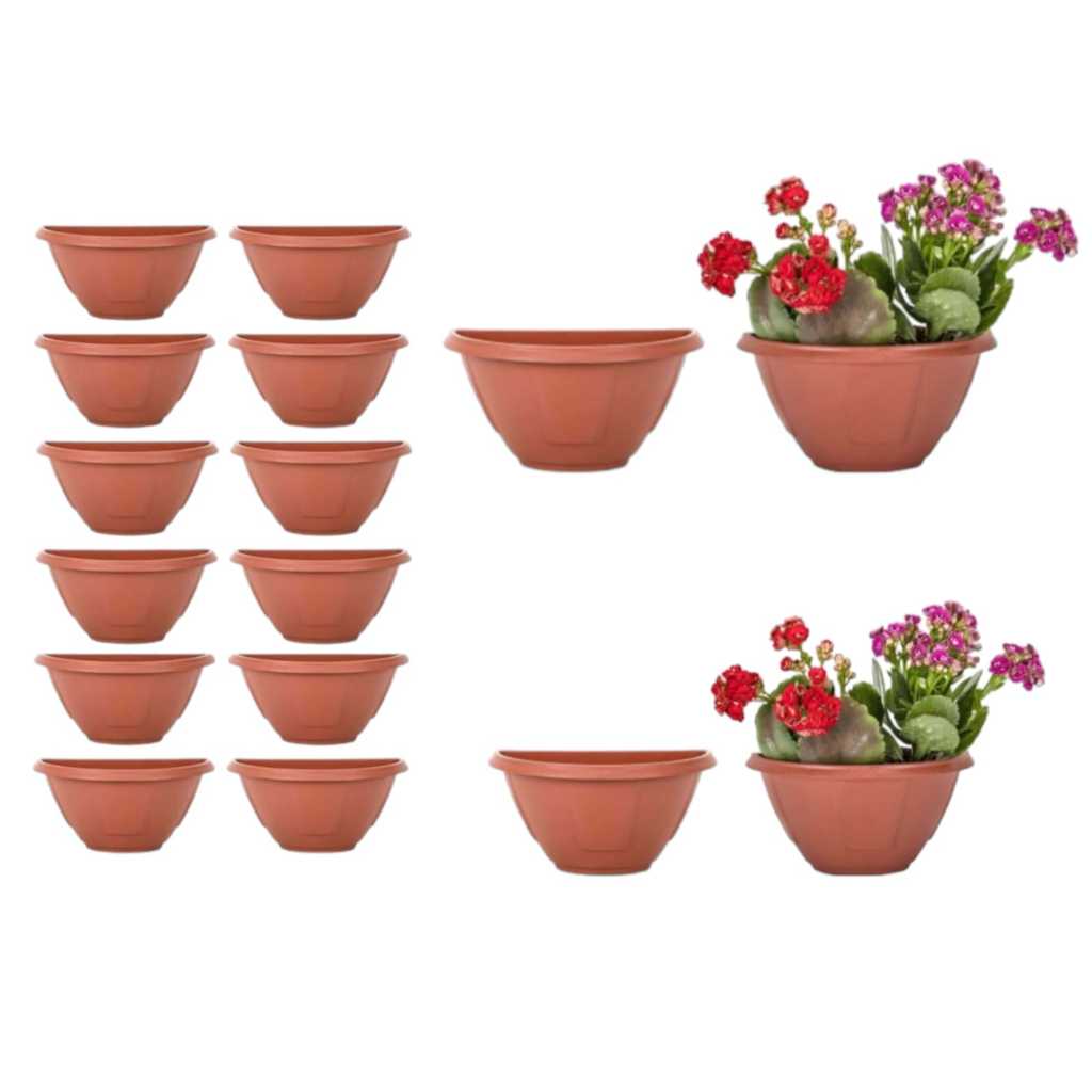 Kit 15 Peças Mini Vaso Meia Lua De Parede Pequeno Para Plantas Artificial 16x8,5x8cm Marrom