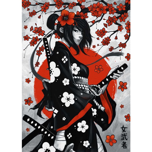 Quadro Decorativo Samurai Sakura Guerreiro, decoração casa Quadro Decorativo japonês