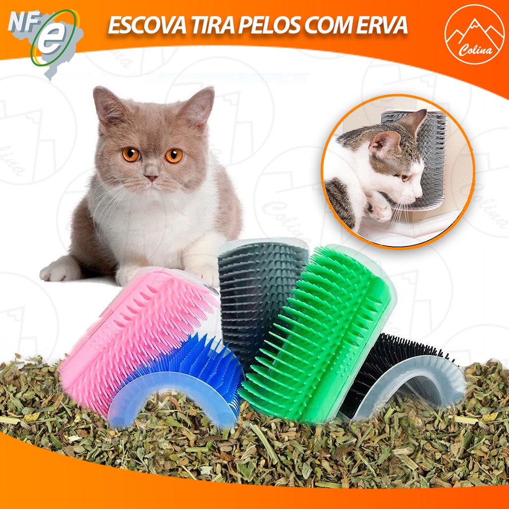 Escova Tira Pêlos Coçador Com Catnip Erva Para Gato Pet Parede Gato Massagem Brinquedo