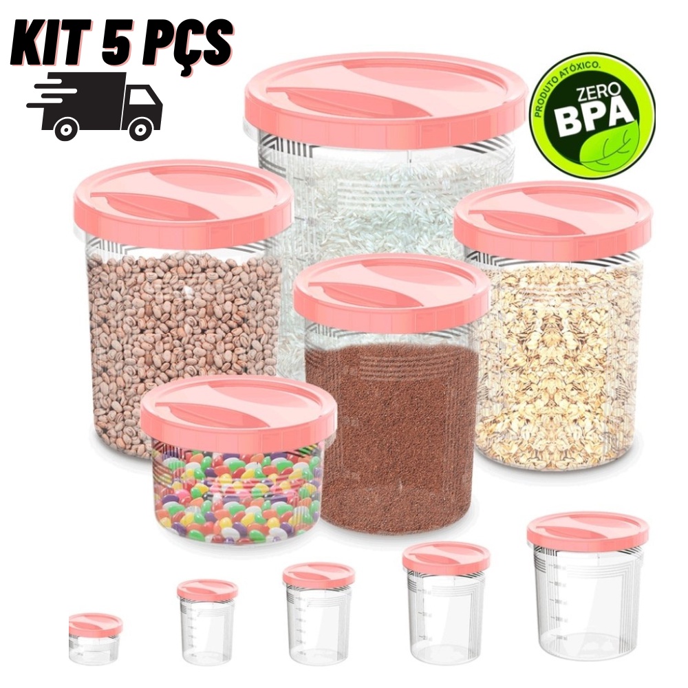 Conjunto De Potes Tampa Com Rosca 5 Peças porta mantimentos Premium - Rosa