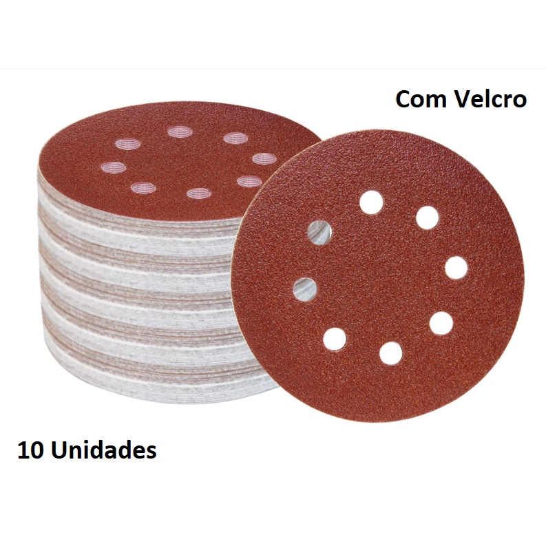 Kit 10 Disco Lixa Velcro 125mm 8 Furos Lixadeira Roto Orbital para Ferro Metal Madeira Massa