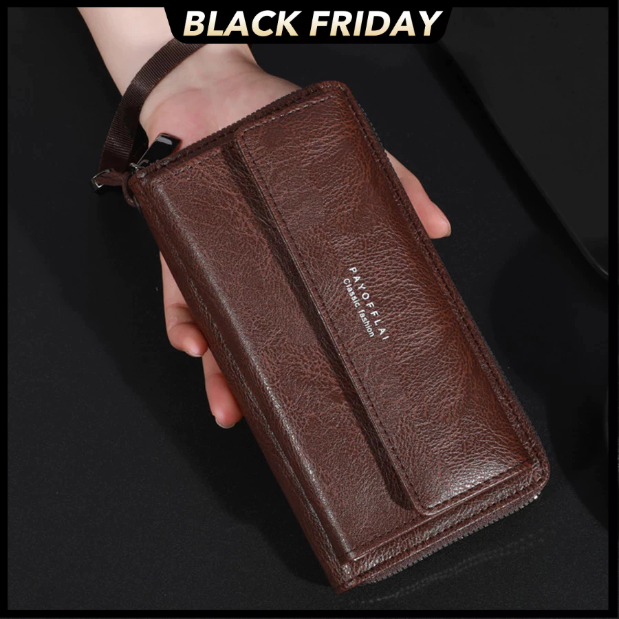 Carteira Masculina Com Zíper Longo – Suporte Para Telefone Em Couro PU De Grande Capacidade Compartimentos Vários Cartõe