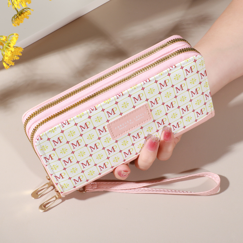 Novo Estilo Coreano Carteira de Senhora com Zíper Impresso Longo Estilo Coreano Carteira de Senhora com Zíper Retro Grande Capacidade Carteira de Senhora Leve Bolsa de Embreagem Portátil Porta-cartões de Senhora Porta-cartões de Senhora PU Carteira Multif