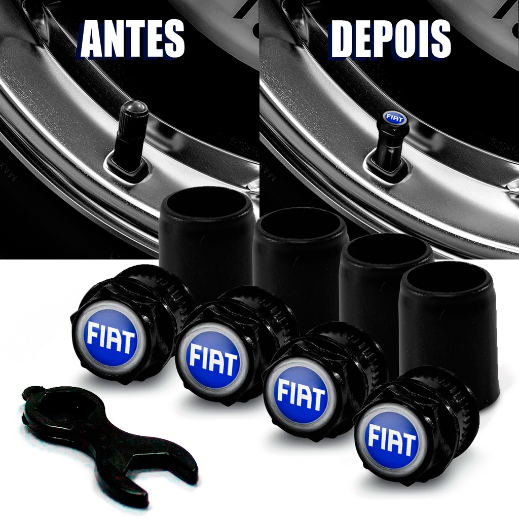 Tampa Bico De Válvula Pneu Antifurto Capa Preta Fiat Azul Uno Palio Siena Strada