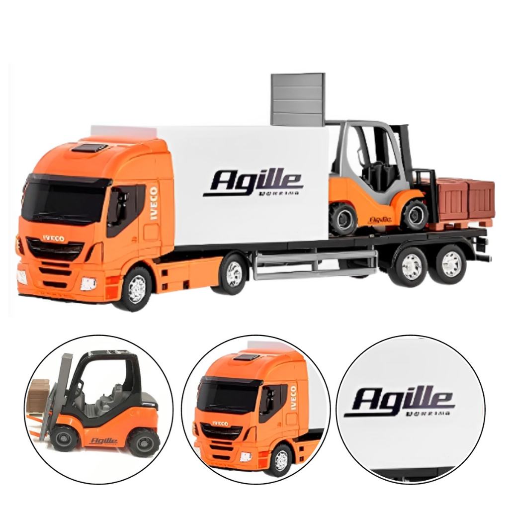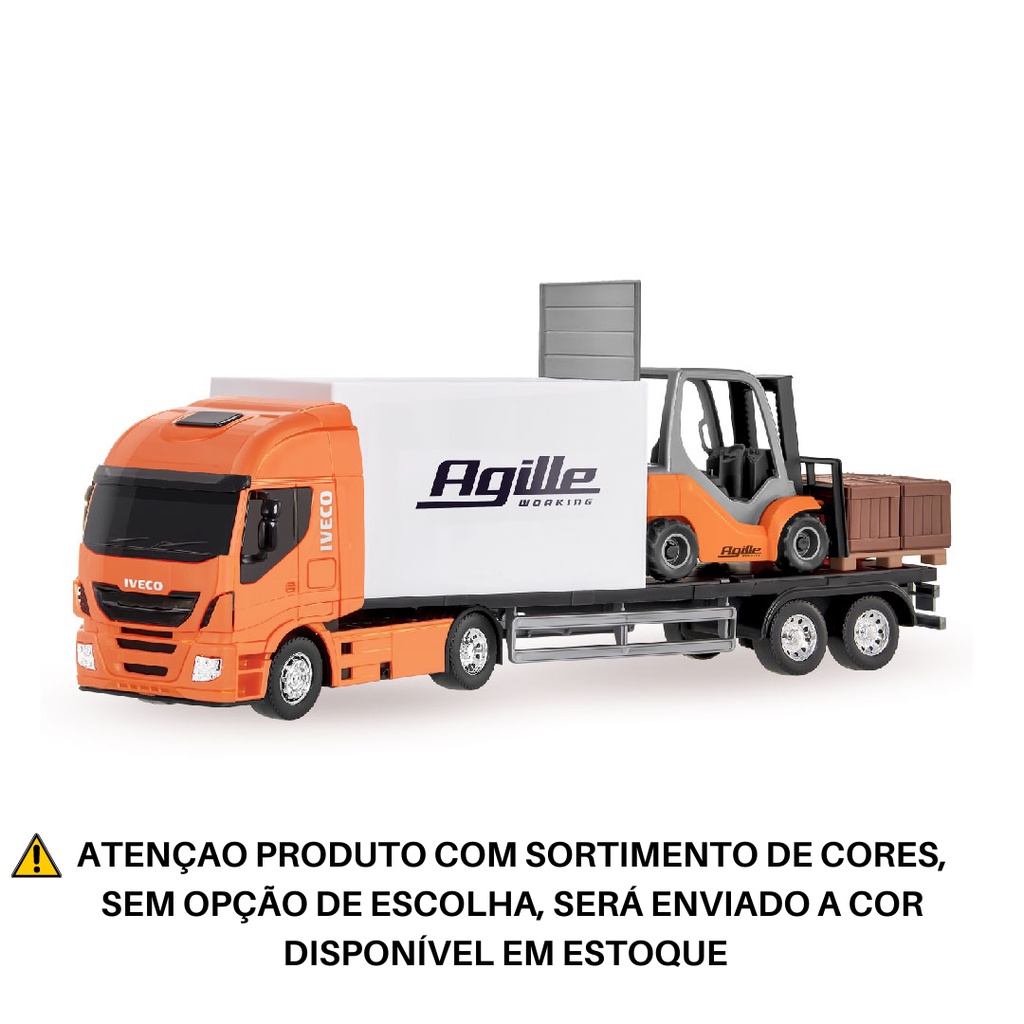 Caminhão de Brinquedo IVECO Hi-Way com Baú e Empilhadeira Agille - Usual Brinquedos