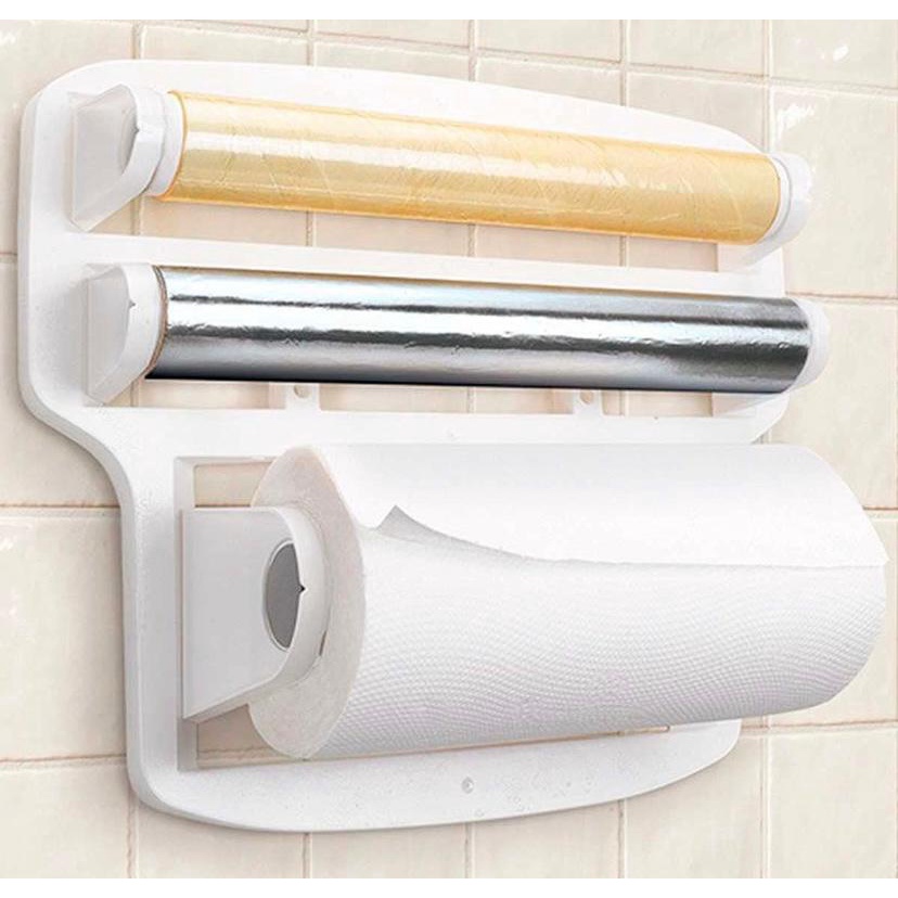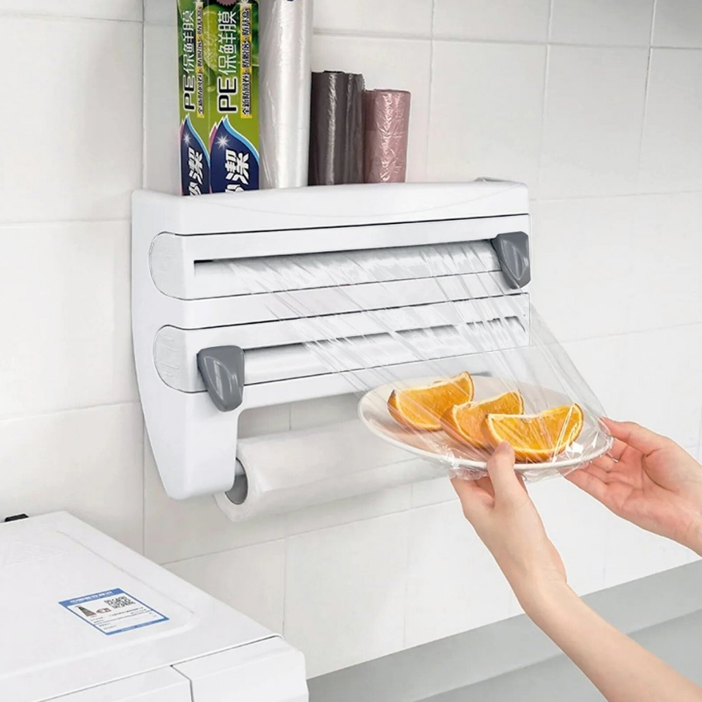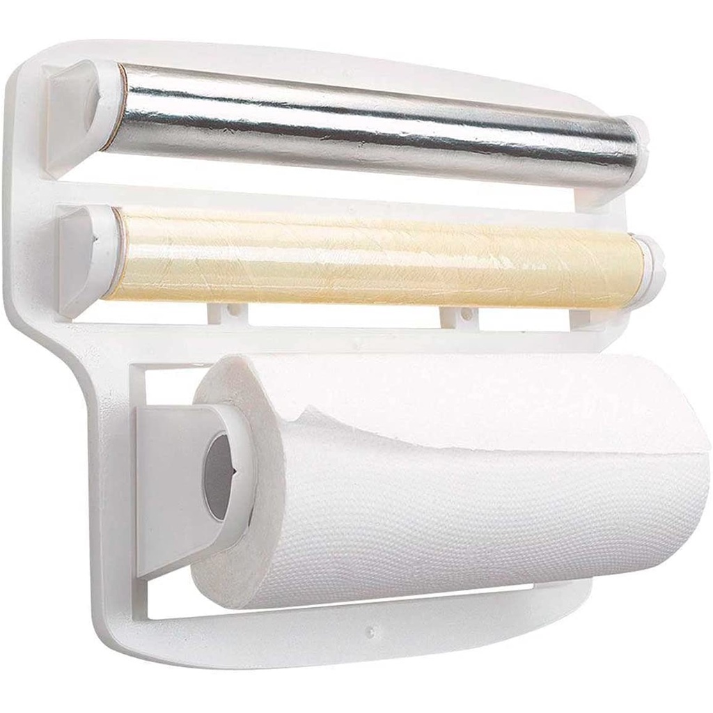 Suporte de Papel Toalha Alumínio Plástico filme-Organizador TRIPLO Porta papel Toalha 4 Em 1