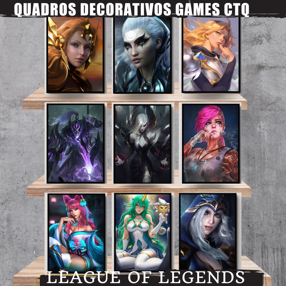 Quadro Decorativo Modelos League of Legends LOL Tela A4 21x30cm - Pôster Placa Anime Quadro Kit Quadrinhos