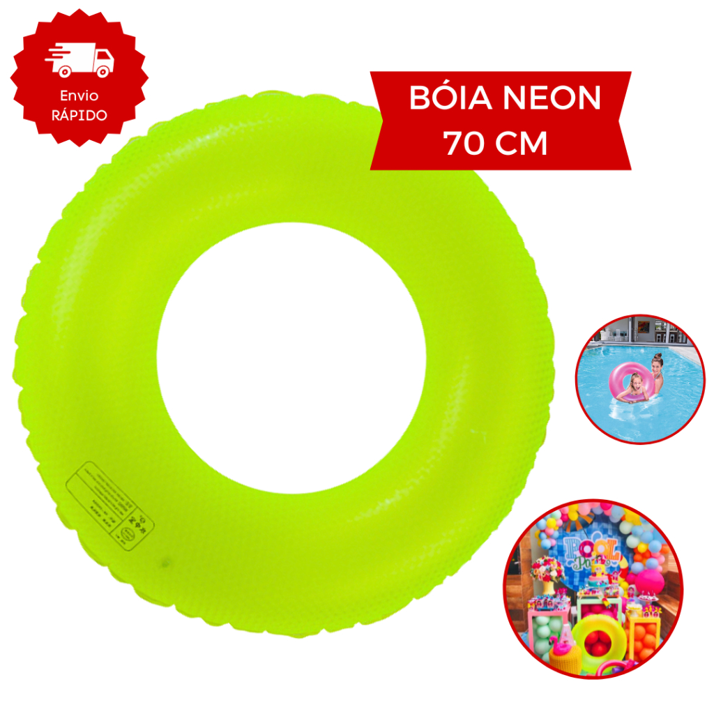 Kit 3 Bóia Neon Circular Redonda 80 cm +70 cm + 51 cm Fluorescente Inflável para Piscina Criança Adulto para Decoração de Festa Pool Party