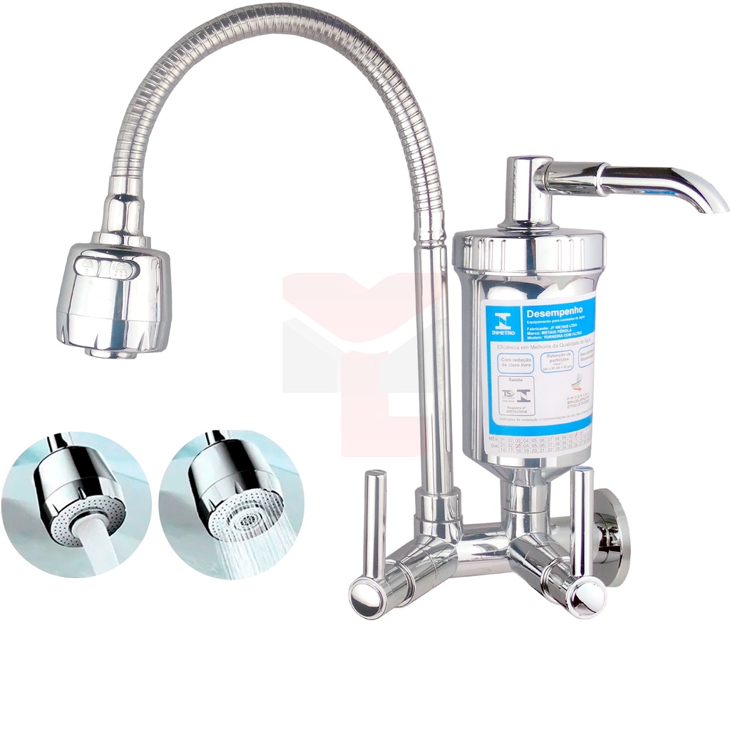 Torneira Gourmet Com Filtro Cozinha Parede Pia 1/4 De Volta 2070 + 1 Refil Extra 2070-R
