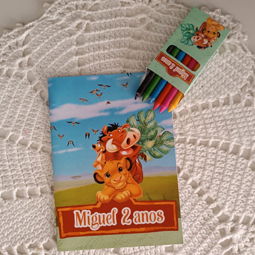 10 Kit Pintura Rei Leão Personalizados - Giz de Cera - Kit Colorir - Lembrancinha - Aniversário